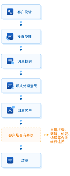 信函 2、投訴所需資料 (1)投訴人的基本情況,包括:自然人或者其法定代理人姓名、身份信息、聯系方式;法人或者其他組織的名稱、住所、統一社會信用代碼,法定代表人或者主要負責人的姓名、身份信息、聯系方式,法人或者其他組織投訴代理人的姓名、身份信息、聯系方式、授權委托書; (2)被投訴人的基本情況,包括:被投訴的機構名稱;被投訴的險業從業人員的相關情況以及其所屬機構的名稱; (3)投訴請求、主要事實和相關依據。 注:投訴人提出投訴確有困難的,投訴人委托他人代為投訴,則還需要提供經投訴人親筆簽名或者蓋章的授權委托書原件,受托人身份證明和有效聯系方式 3、客戶投訴處理流程  4、理賠爭議處理機制: 本合同履行過程中,雙方發生爭議時,可以從下列兩種方式中選擇一種爭議處理方式: (1)因履行本合同發生的爭議,由雙方協商解決,協商不成的,提交本合同約定的仲裁委員會仲裁; (2)因履行本合同發生的爭議,由雙方協商解決,協商不成的,依法向人民法院起訴。 5、理賠條件和流程: 對于發生了保險責任約定的保險事故(保險責任詳見保險條款),客戶可按以下流程申請理賠。 (一)報案 被保險人出險后,可通過客服電話(客服電話:95500)、太平洋壽險微信公眾號、微信小程序“太慧賠”、太平洋壽險APP、太平洋保險官網或咨詢柜面工作人員及時報案。多種理賠報案通道覆蓋全場景客戶服務,給您提供必要的協助。 (二)理賠申請 您可以在報案后,根據保險公司要求提交相應證明和材料。 (三)受理及審核 保險公司在收到客戶保險金給付申請書及合同約定的證明和資料后,對于簡單案件會在5個工作日內核定,對于復雜案件會在30個工作日內核定。對屬于保險責任的,在與被保險人或受益人達成賠償或給付保險金的協議后10日內給付賠款,但合同另有約定的除外。 (四)保險金給付 保險公司審核案件并對屬于保險事故責任的進行理賠支付,理賠金將直接轉賬至被保險人/受益人名下的指定銀行卡賬戶。