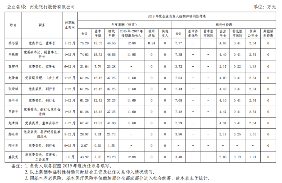 河北省省屬國有企業負責人2019年度薪酬信息披露表