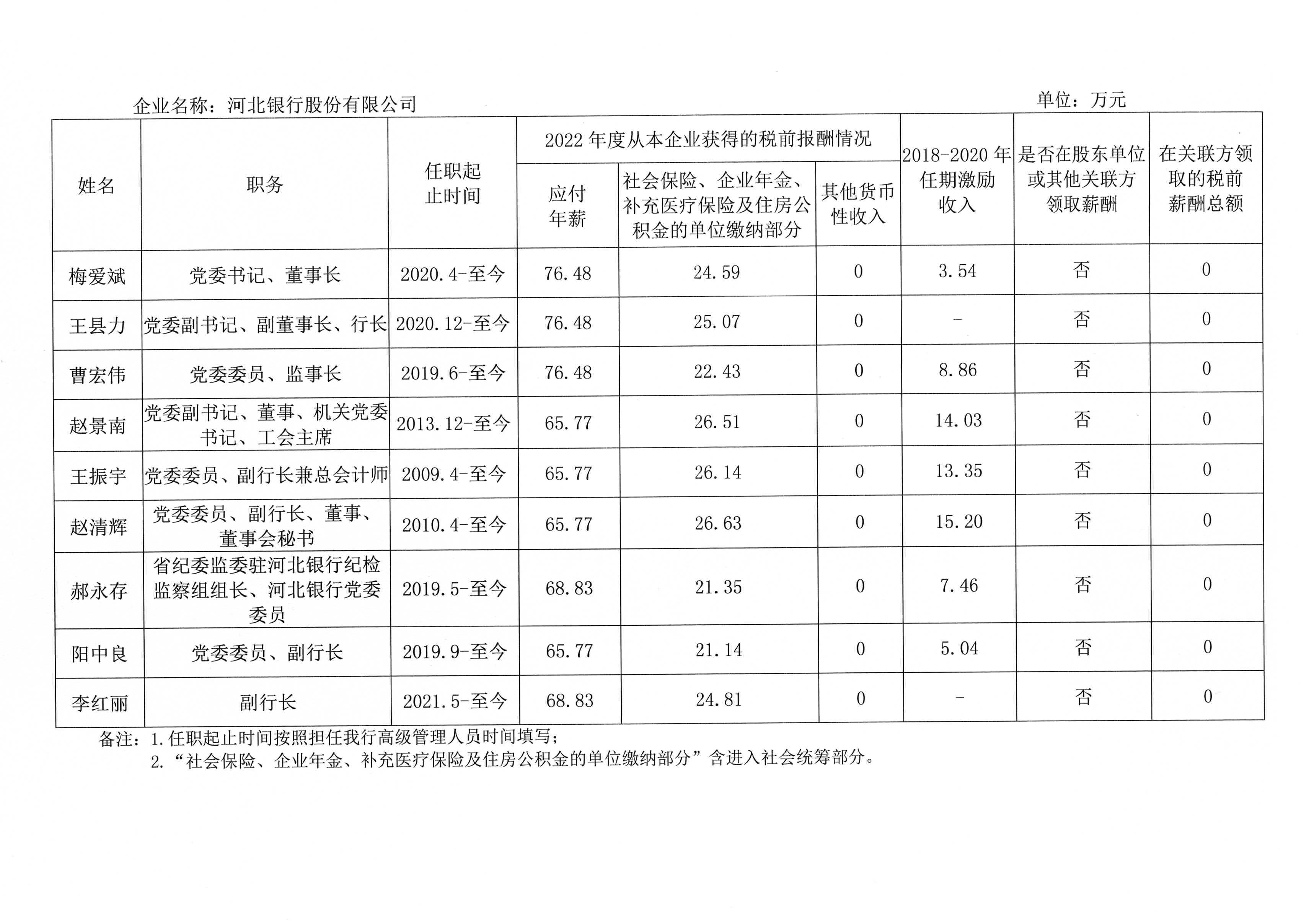 河北省省屬國有企業負責人2022年度薪酬信息披露表