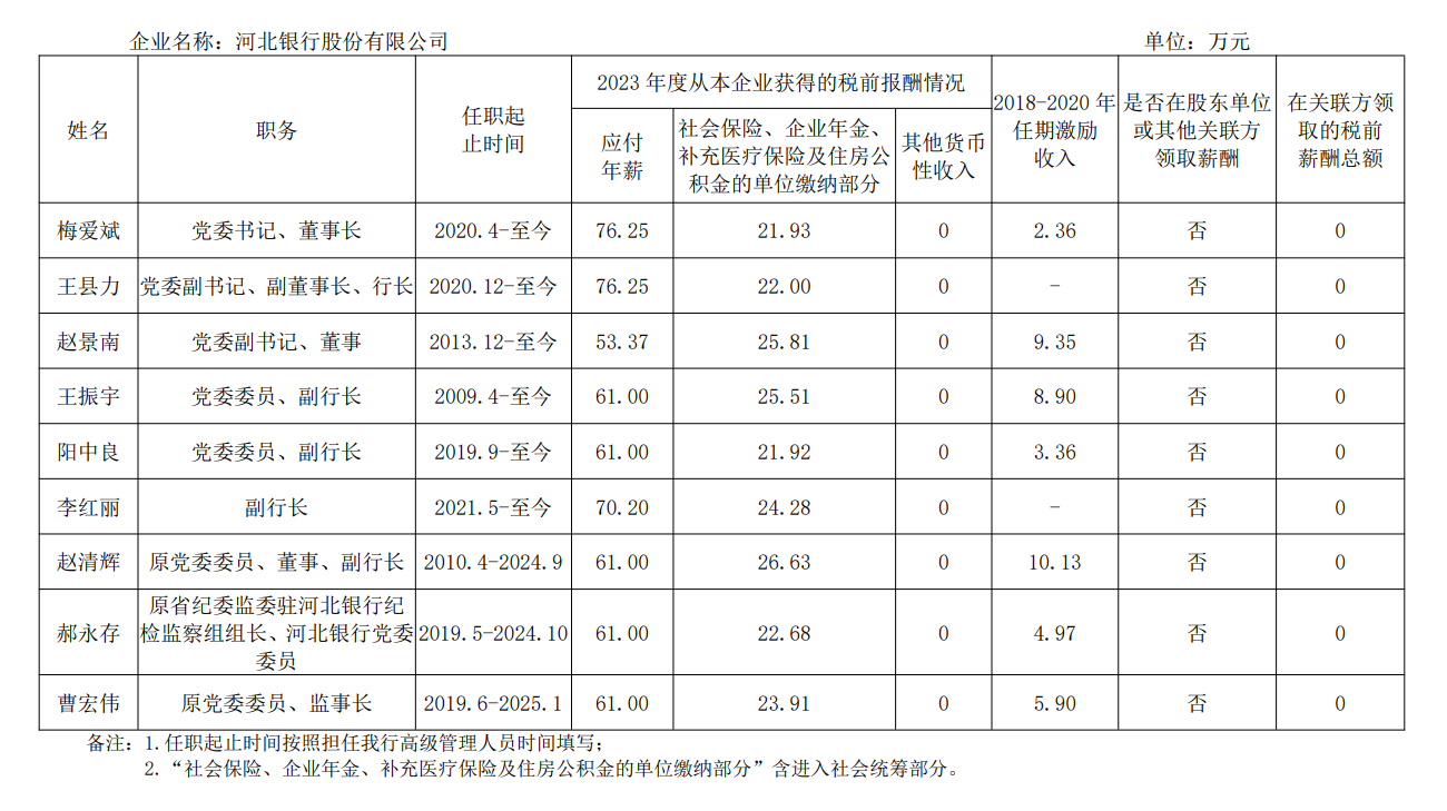 河北省省屬國有企業負責人2023年度薪酬信息披露表